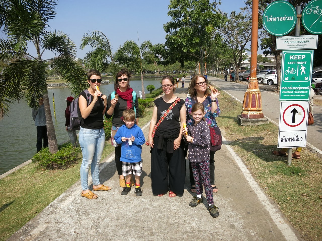 Half the thrill of being in Thailand is eating Thai food. E.g. somtam without the fermented fish sauce in it! (the other half is practicing the switch to Thai from Lao. Tricky and challenging, but fun.) So we ate and drank and chatted like locals...
